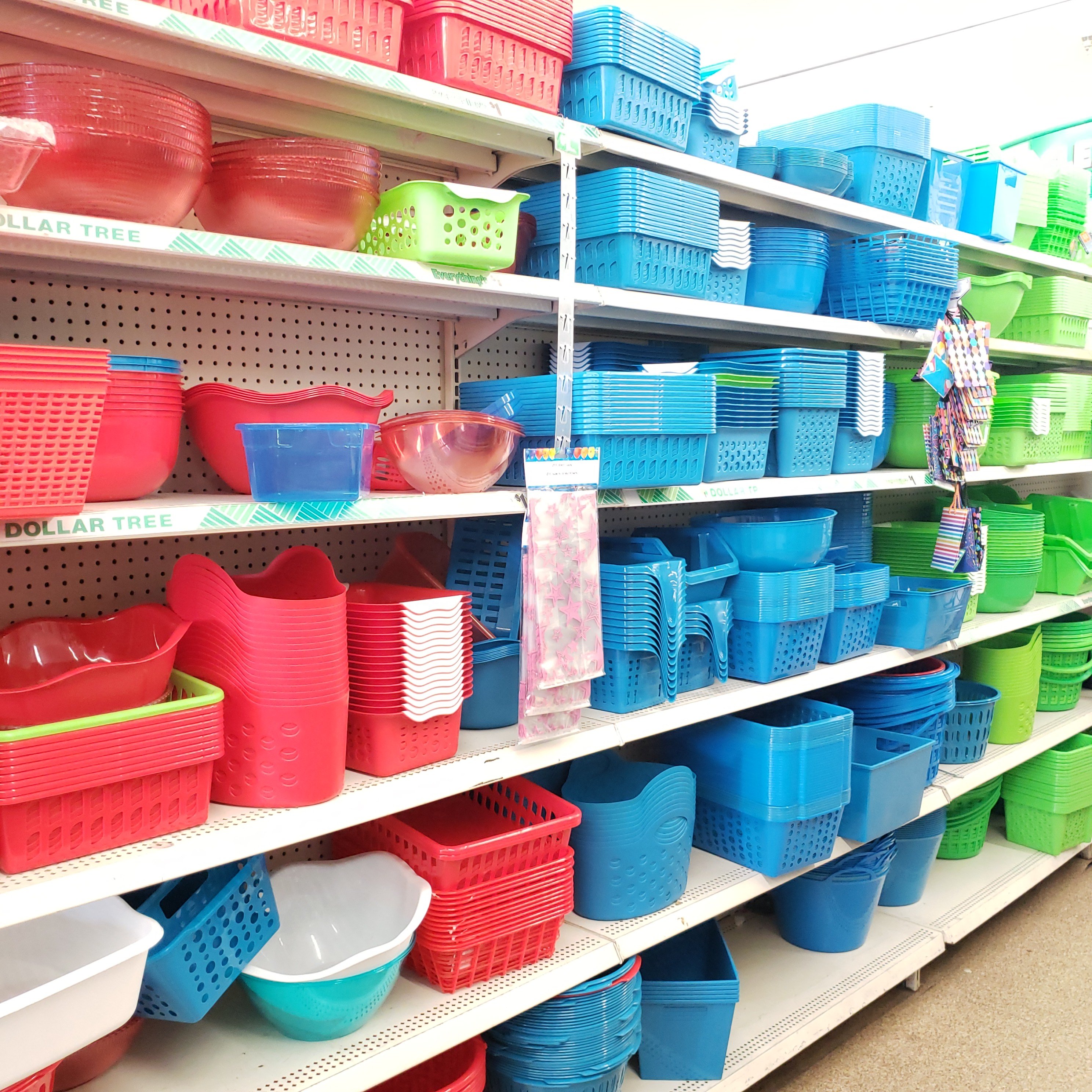Once you’ve selected your colors, you’re ready to gather bins, storage containers, and accessories in your colors. I suggest going to the Dollar Tree bin aisle. They have a huge selection of bins. If you can’t find the colors you want you can always opt for black and white. This will give you a clean look and you can add in color with labels.